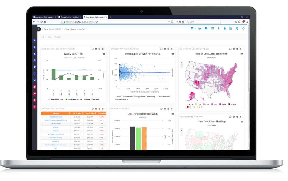 Avantalytics isn't like our competitors who charge for a pretty visualization layer and reporting package built atop a commercial database, we built it from the ground up to be a fully-featured retail analytics platform of limitless scale, designed for retail sales and without compromise.